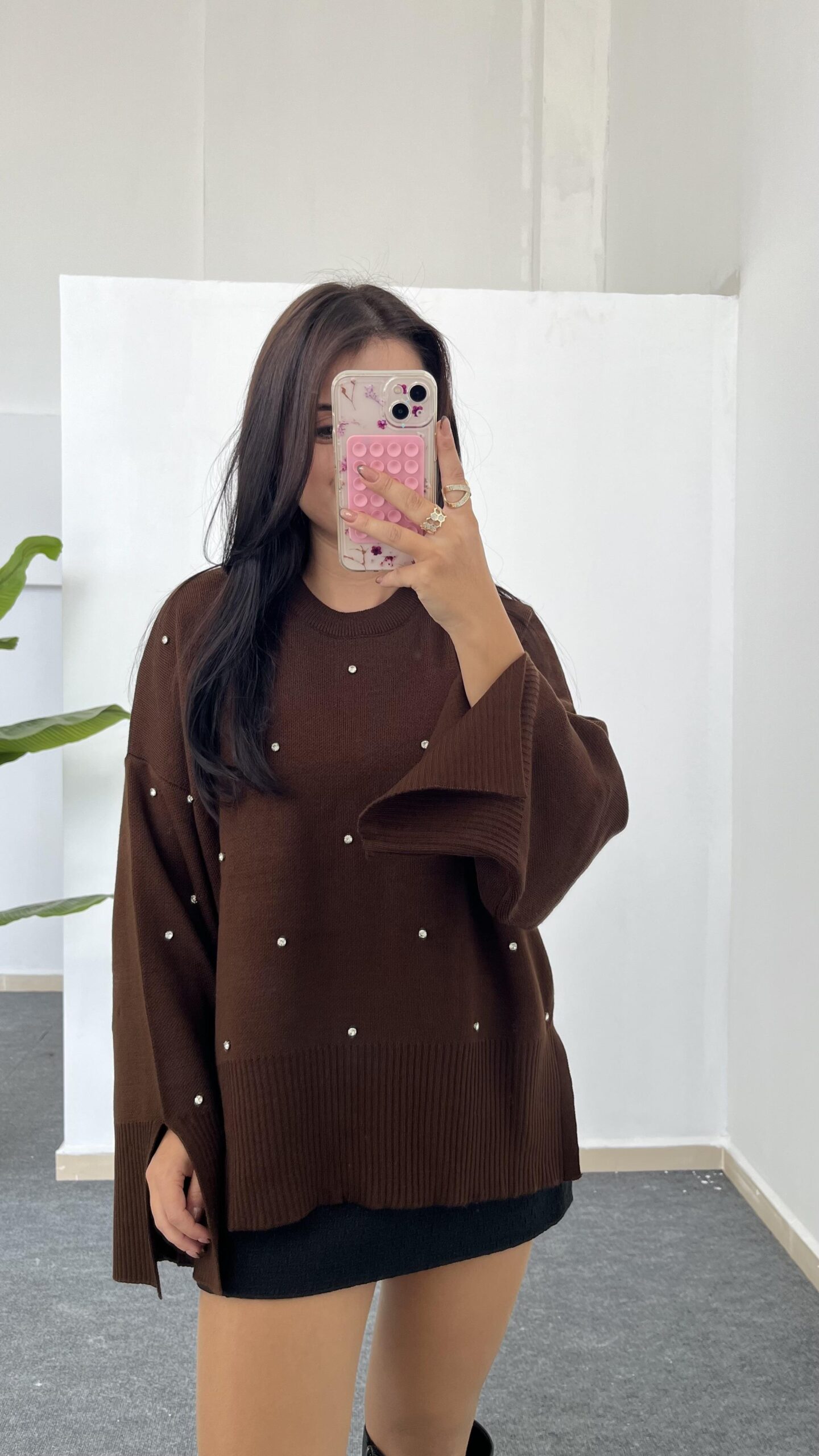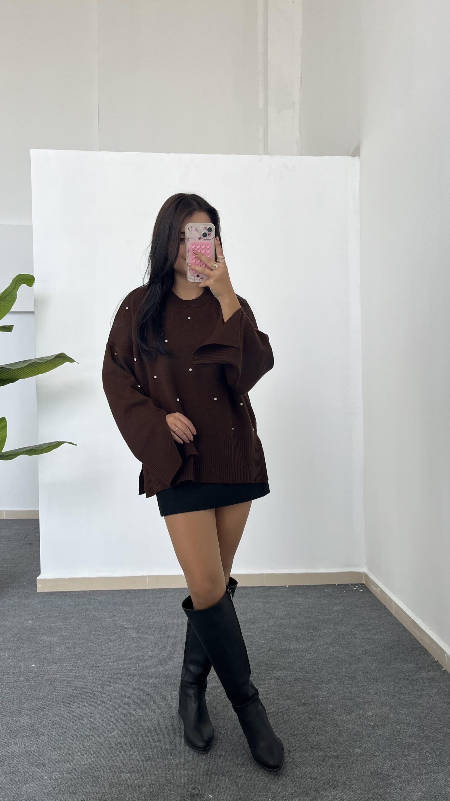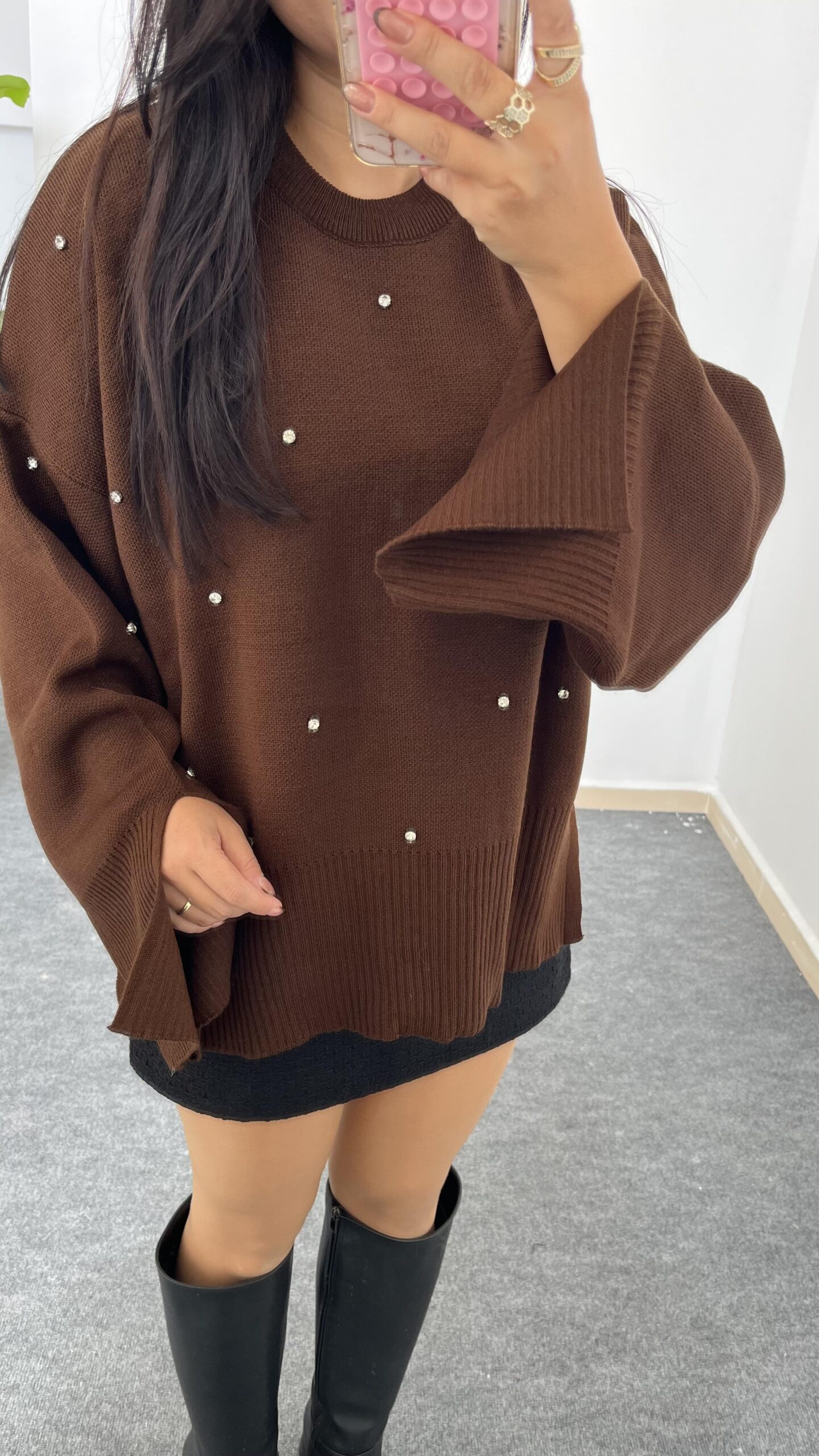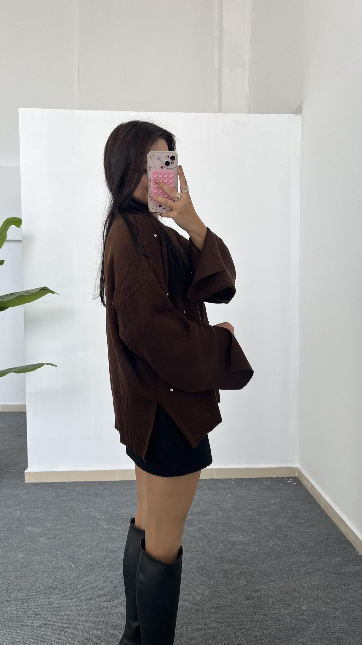 Yırtmaçlı Çelik Triko – Kahverengi