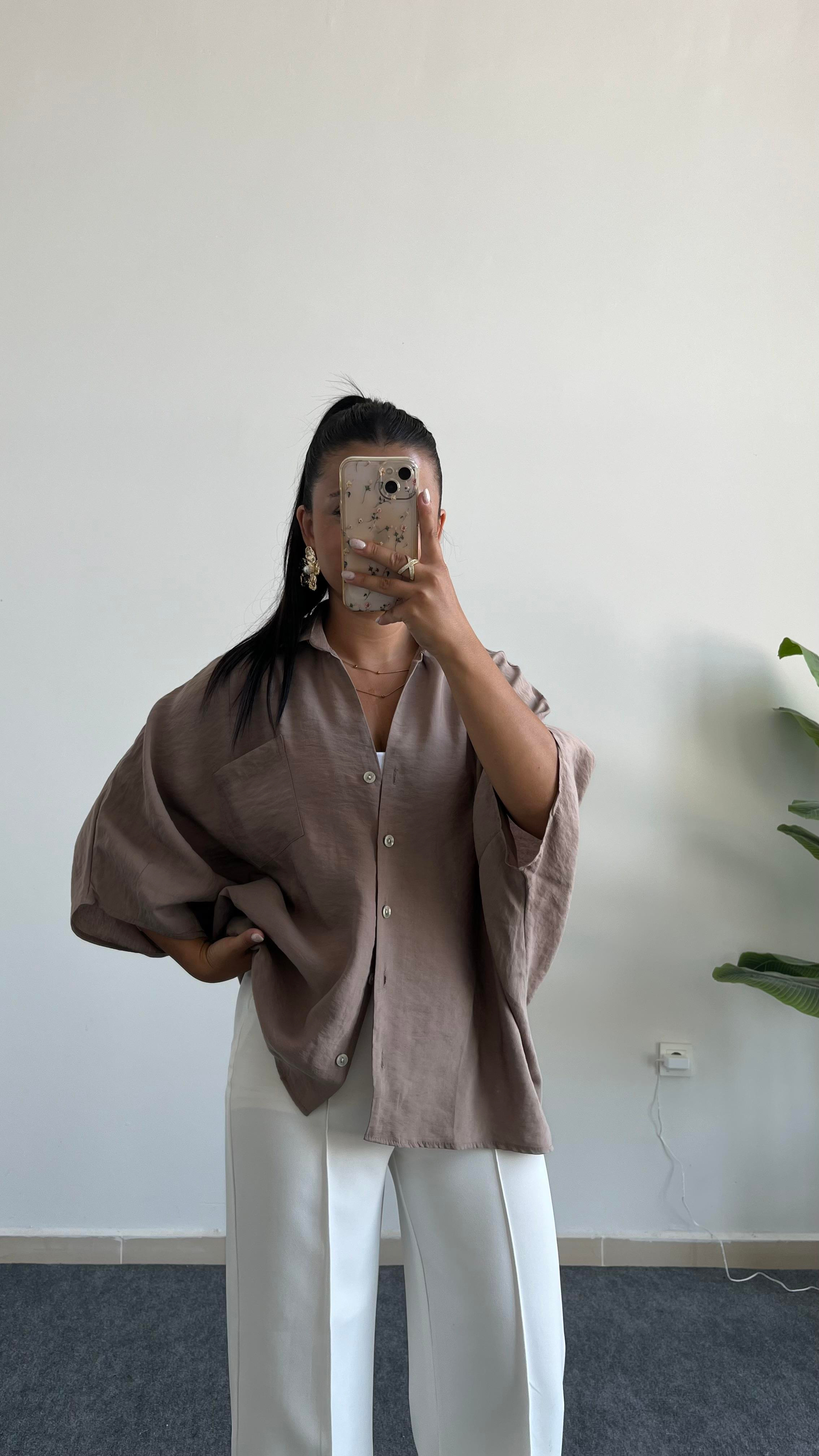 Carlos Kısa Kol Tensel Gömlek - Kahve