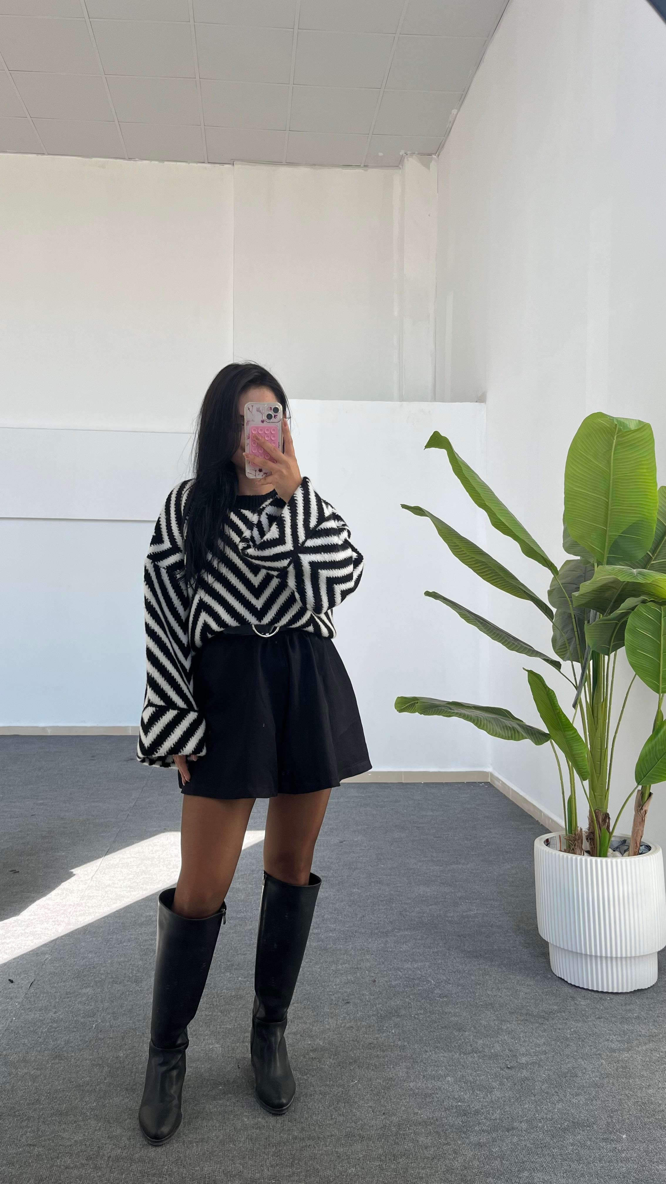 Hera Zikzak Desenli Yumoş Kazak - Siyah