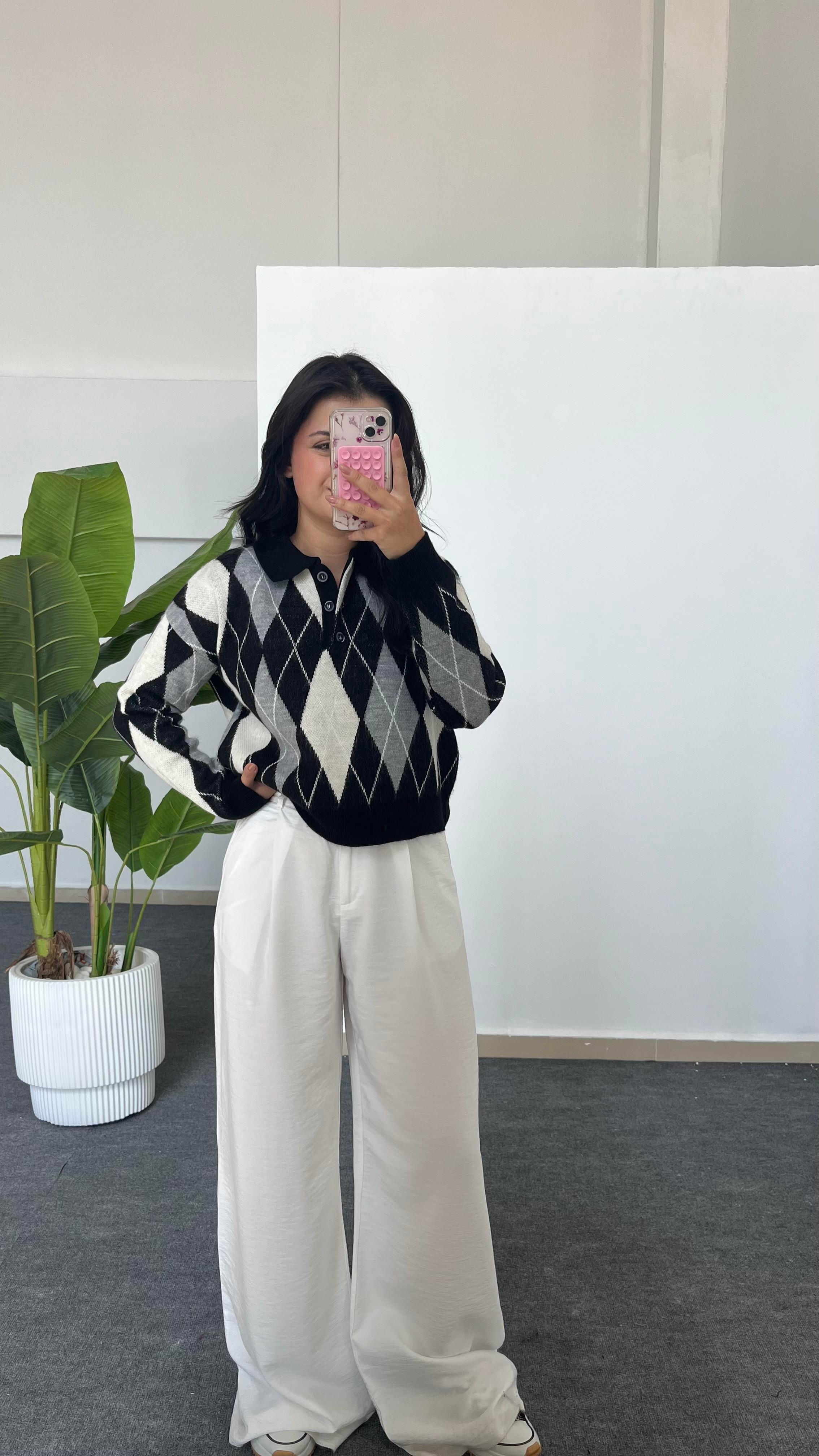 Madia Baklava Desen Polo Yaka Triko - Siyah (PERA-351)