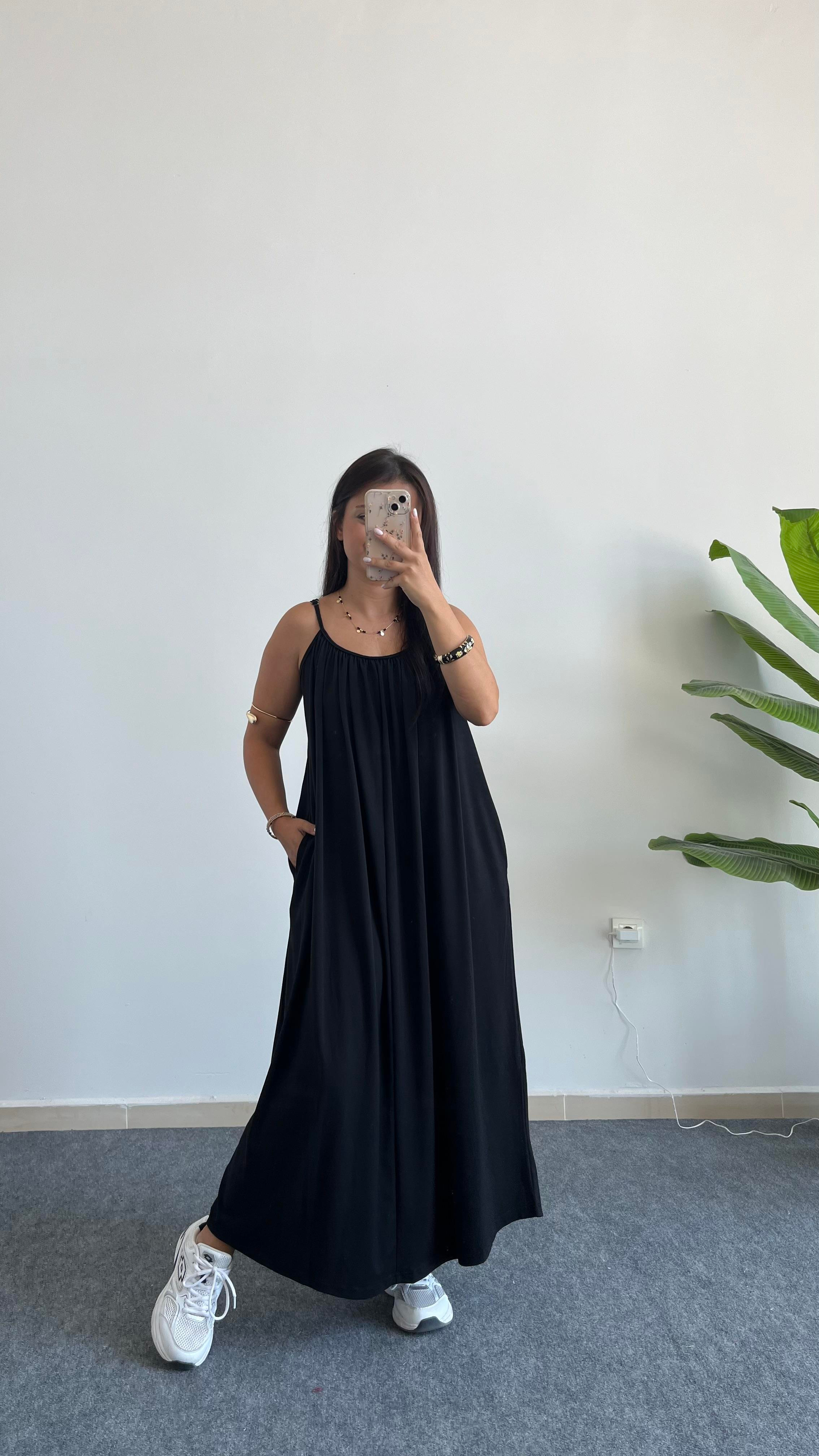 Parteo Askılı Salaş Elbise - Siyah