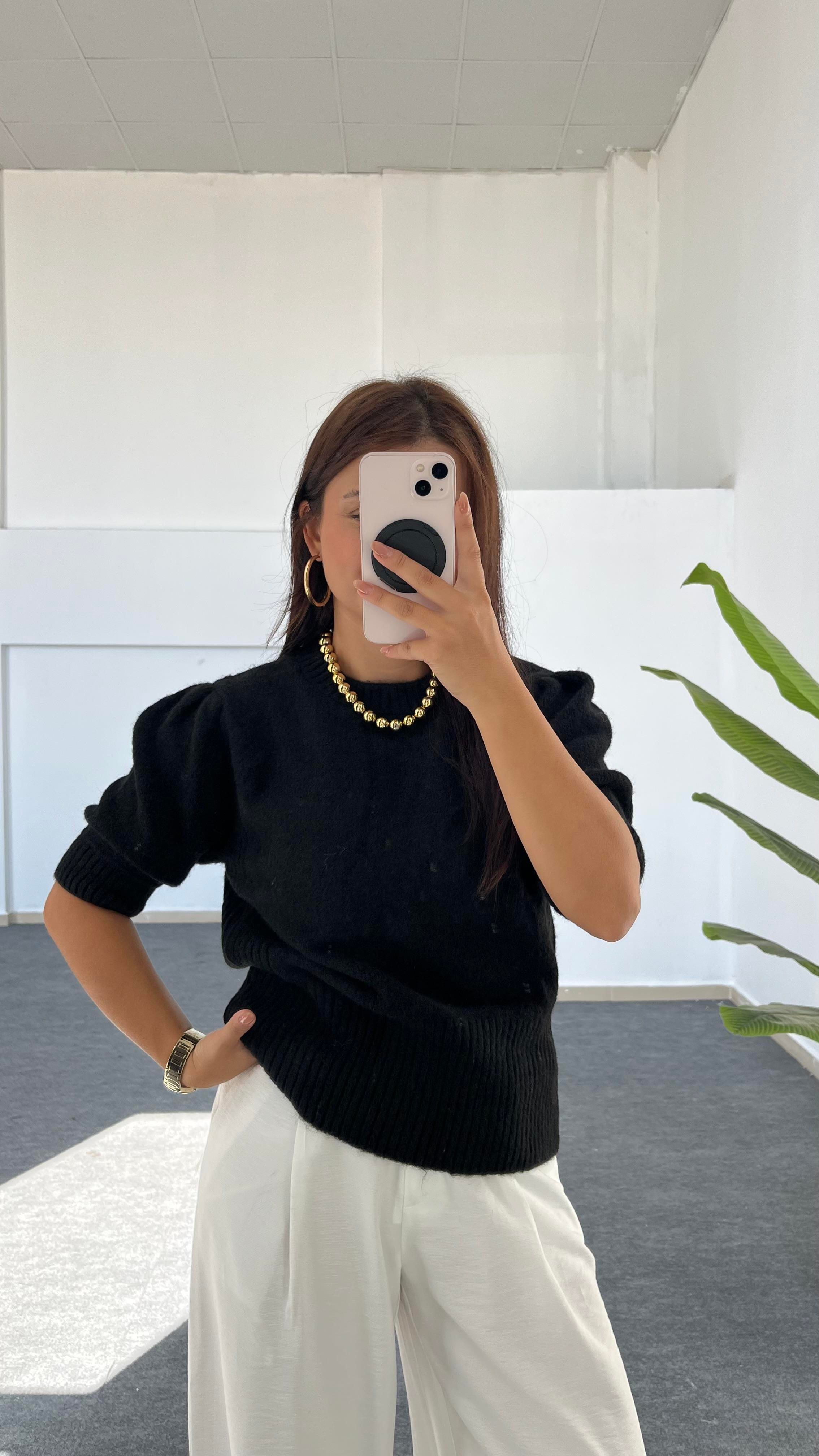 Saline Prenses Kol Yumoş Kazak - Siyah