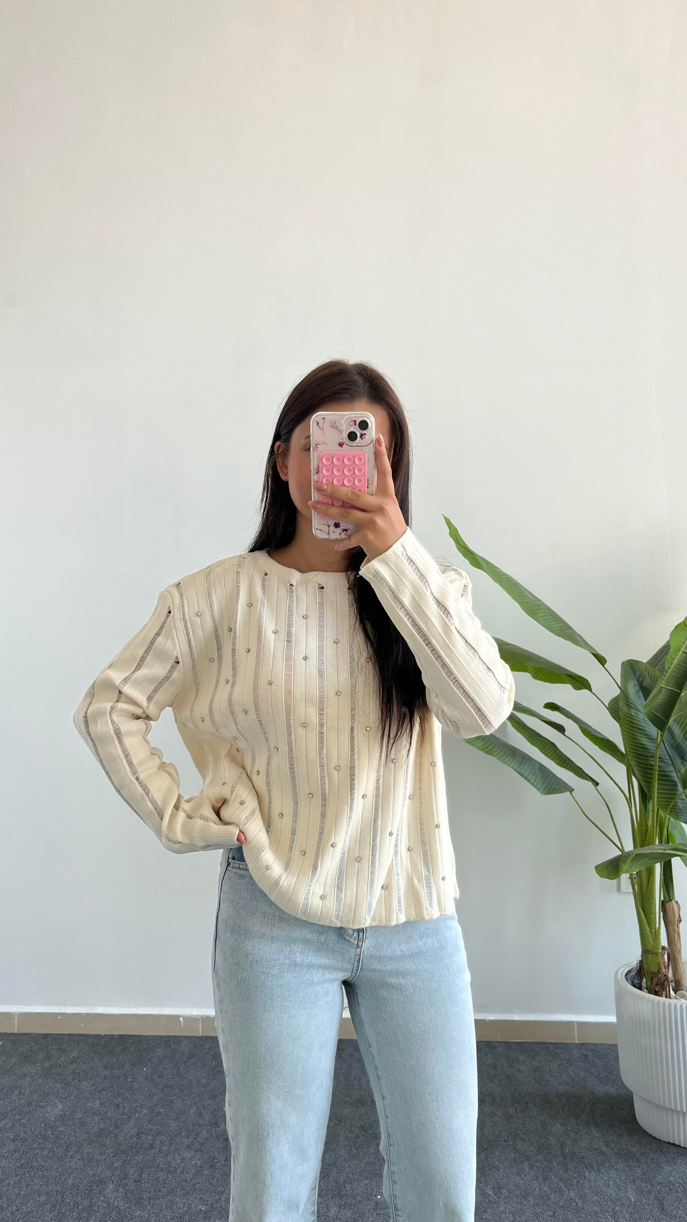 Samba Ajurlu Bluz - Krem