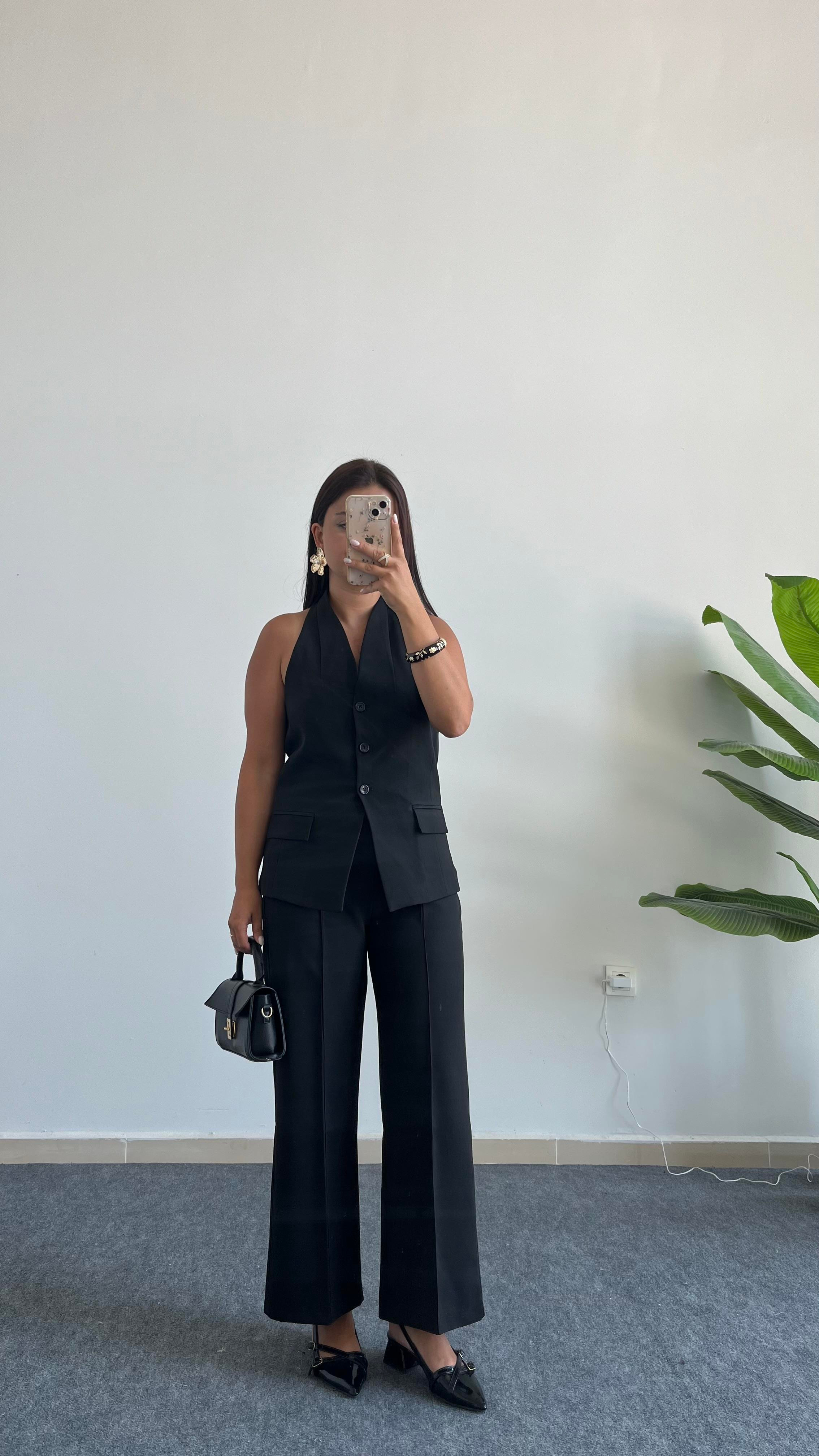 Sandra Boyundan Geçmeli Yelek Pantolon Takım - Siyah