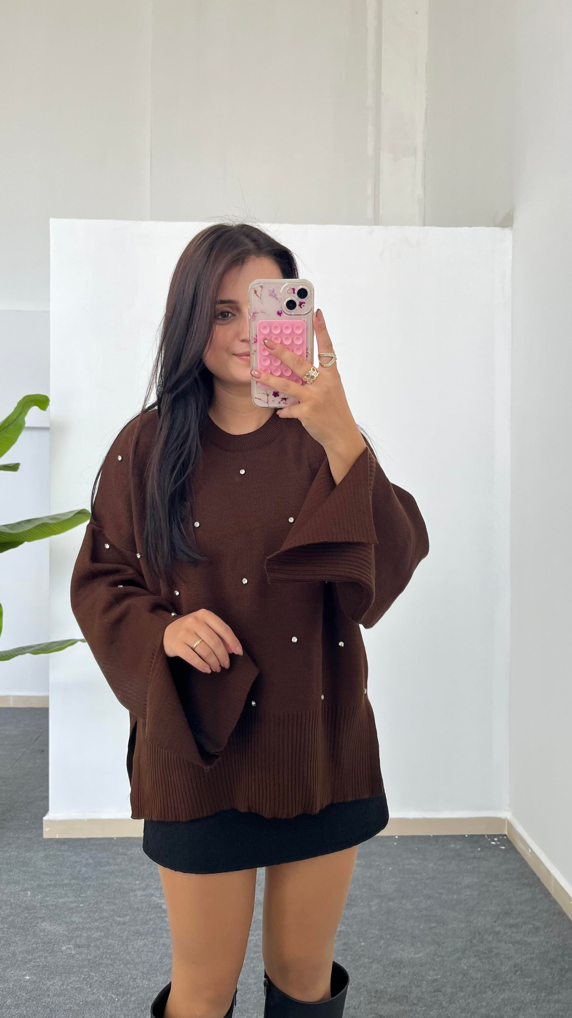 Yırtmaçlı Çelik Triko - Kahverengi (PERA-353)