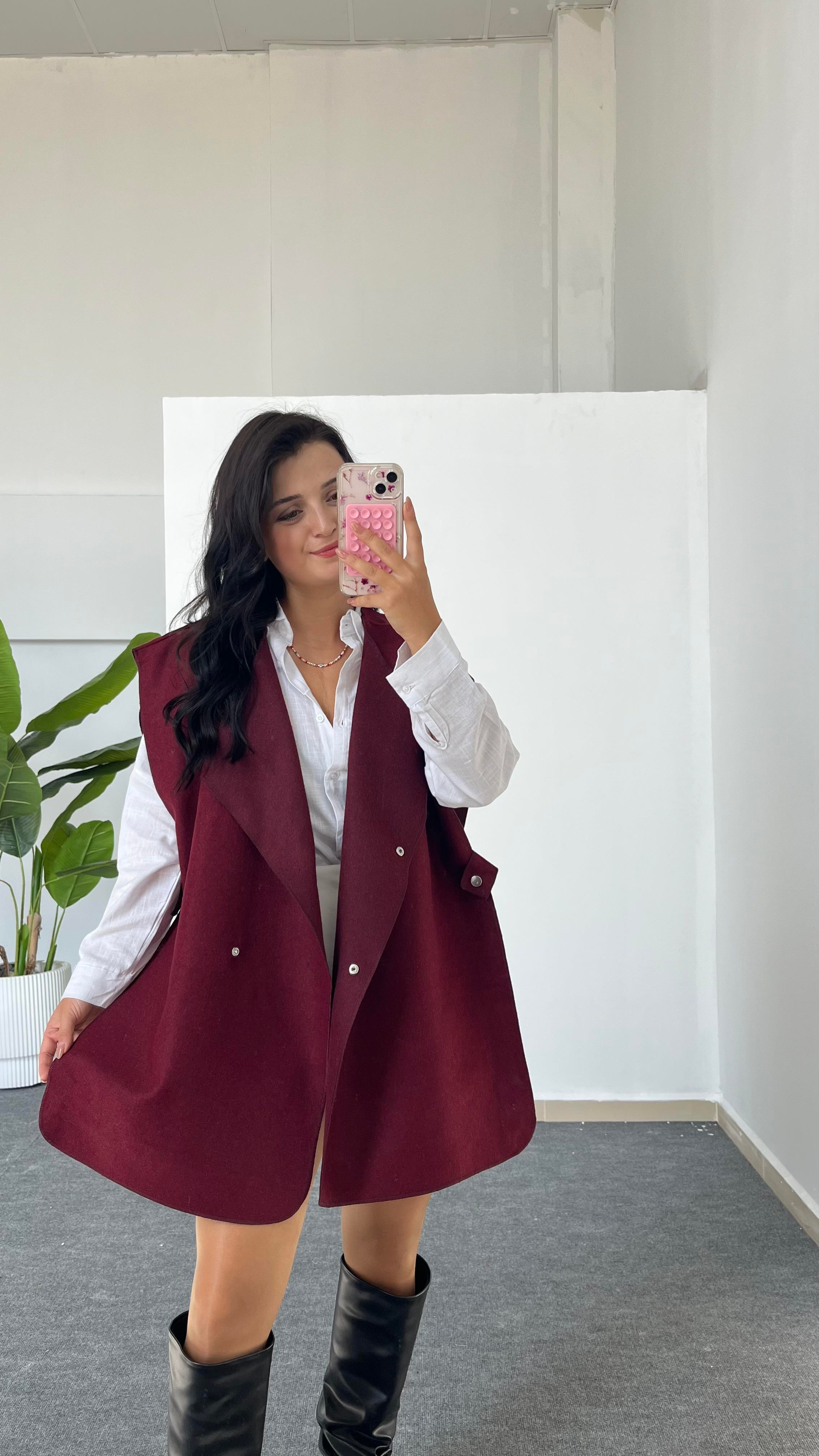 Zımba Düğmeli Çoban Yelek - Bordo